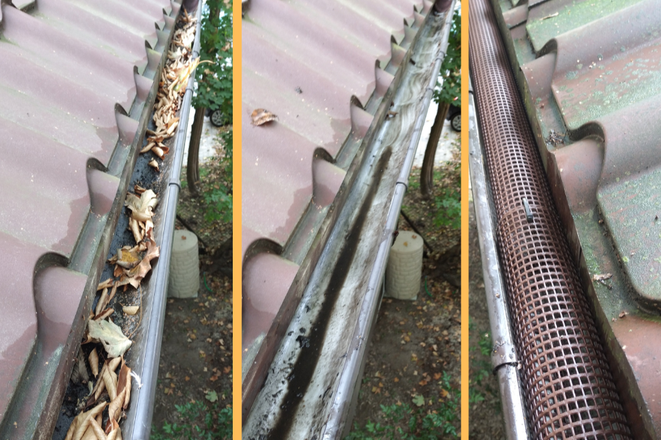 Usługa usuwania liści, brudu i zanieczyszczeń z rynien.